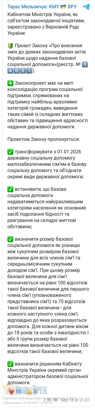 За словами представника Кабміну у Верховній Раді Тараса Мельничука, гроші у рамках нової допомоги отримуватимуть лише найбільш уразливі категорії населення.