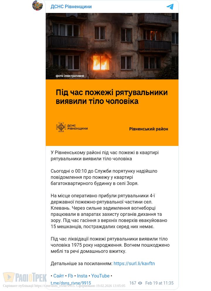Через їдкий дим із багатоповерхівки біля Рівного евакуювали 15 людей