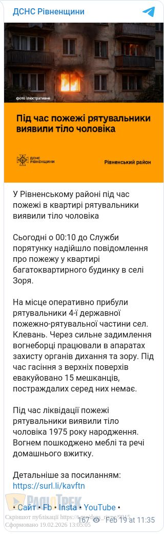 Рятувальники встановили, що займання було в одній із квартир на першому поверсі, у помешканні виявили тіло 55-річного чоловіка.