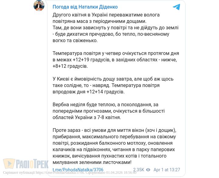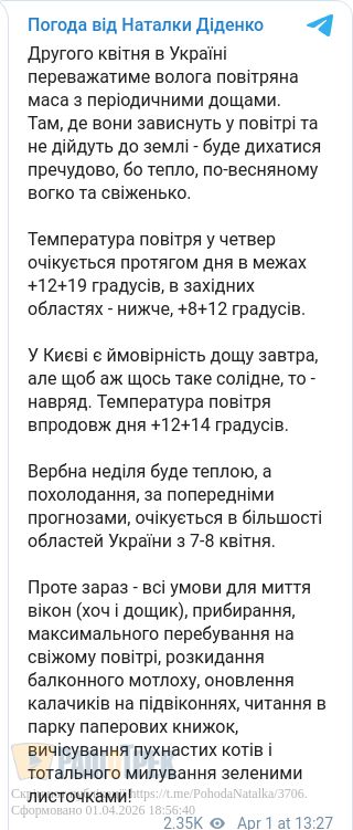 Другого квітня в Україні переважатиме волога, але тепла погода.