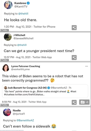 На відео видно, як агент Секретної служби веде президента і вказує дорогу, проте Джо Байден цього не бачить чи не розуміє: