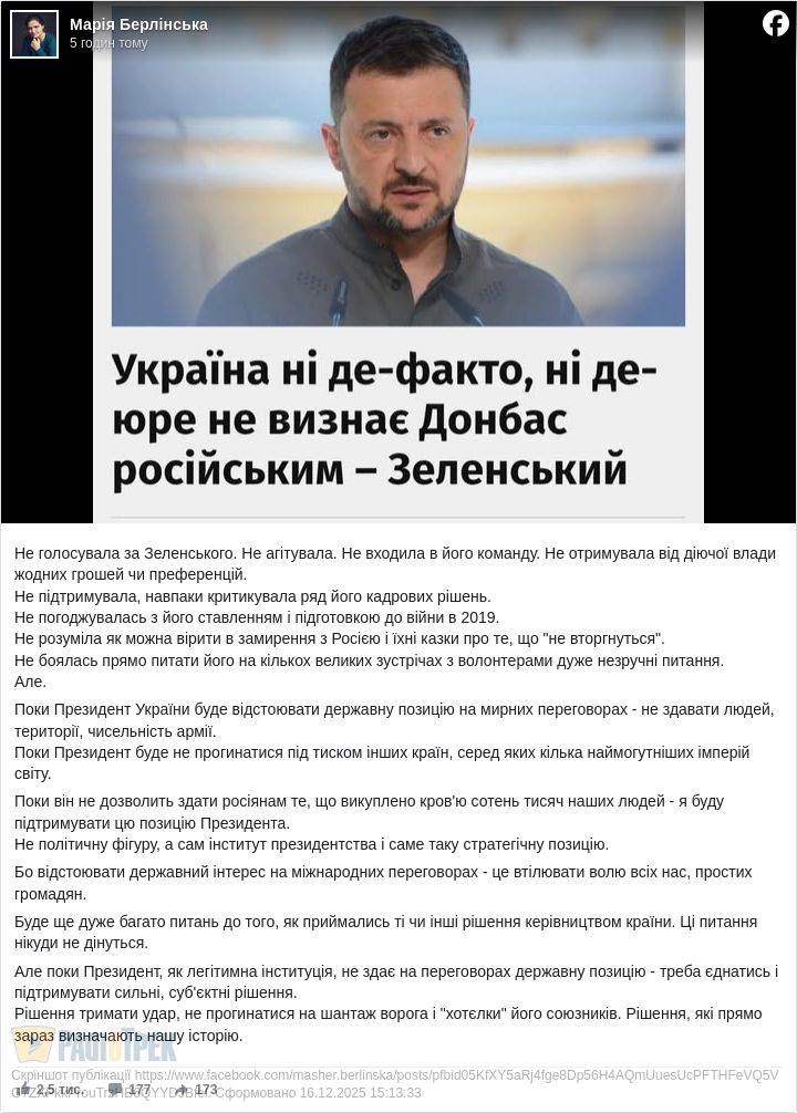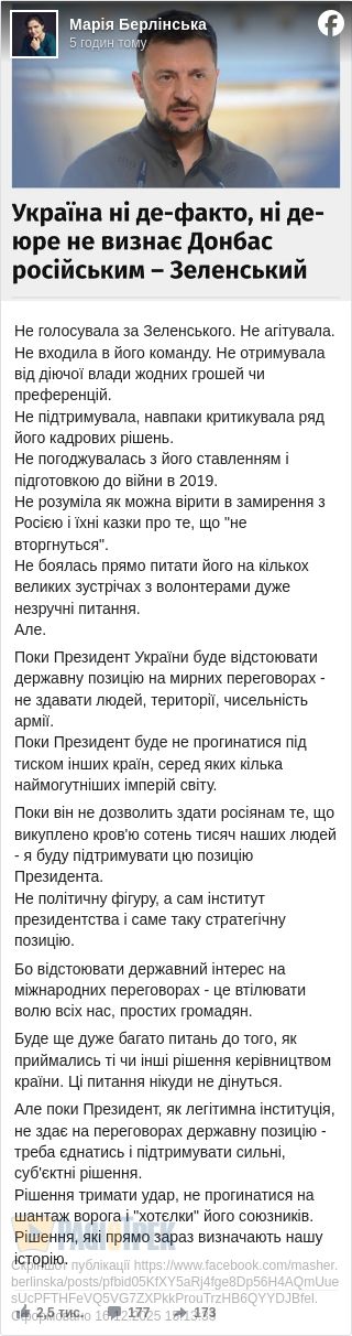 Тим часом Марія Берлінська написала неочікуваний допис у підтримку Зеленського. Допис, загальну тональність якого, певно сьогодні підтримає багато хто.