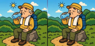 У цій загадці вам потрібно знайти три відмінності між дідусями, які сидять на камені та п’ють воду. На перший погляд здається, що картинки однакові, але якщо придивитися уважніше, можна помітити невеликі відмінності.
