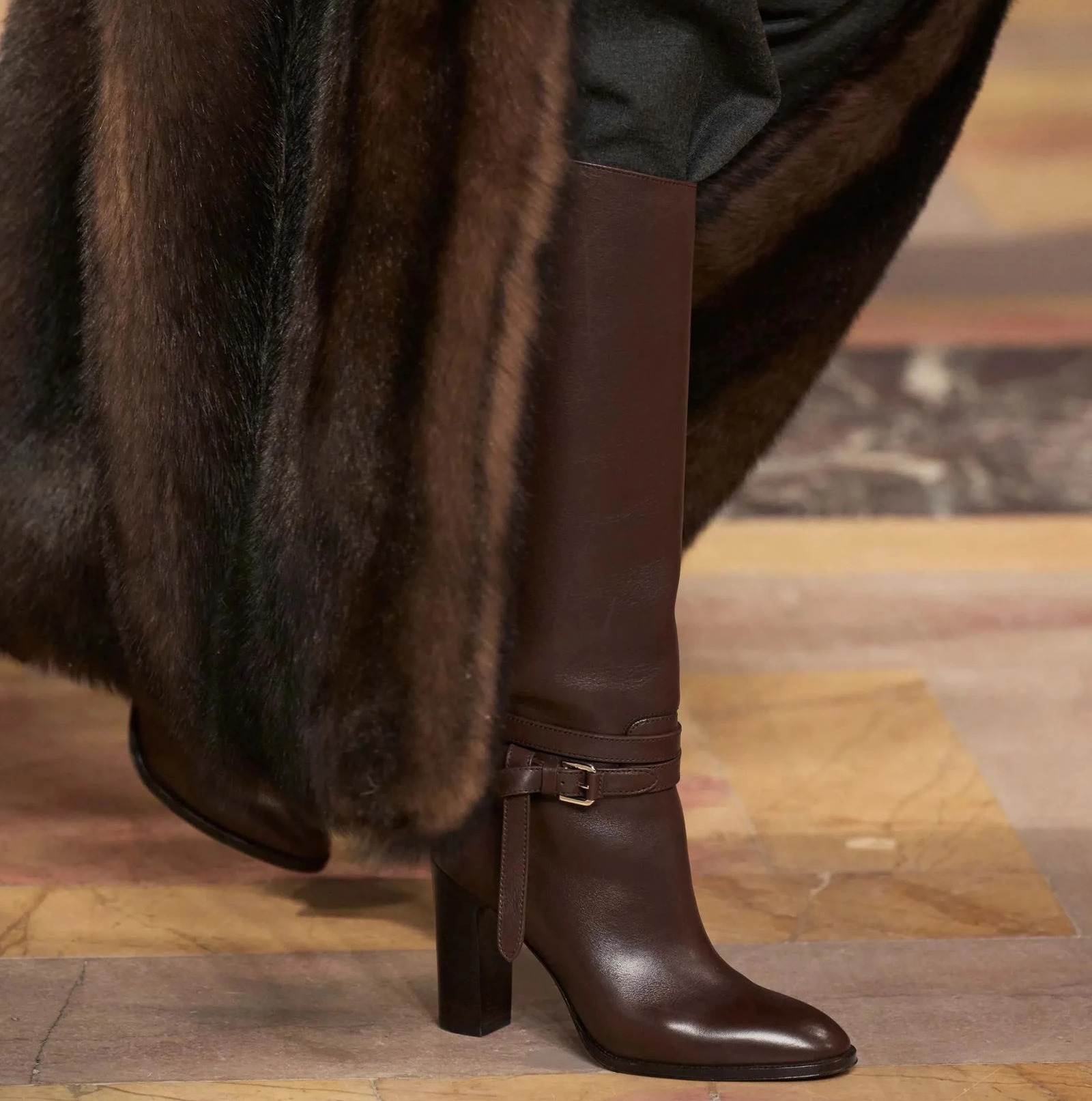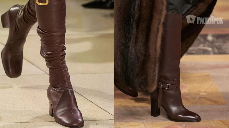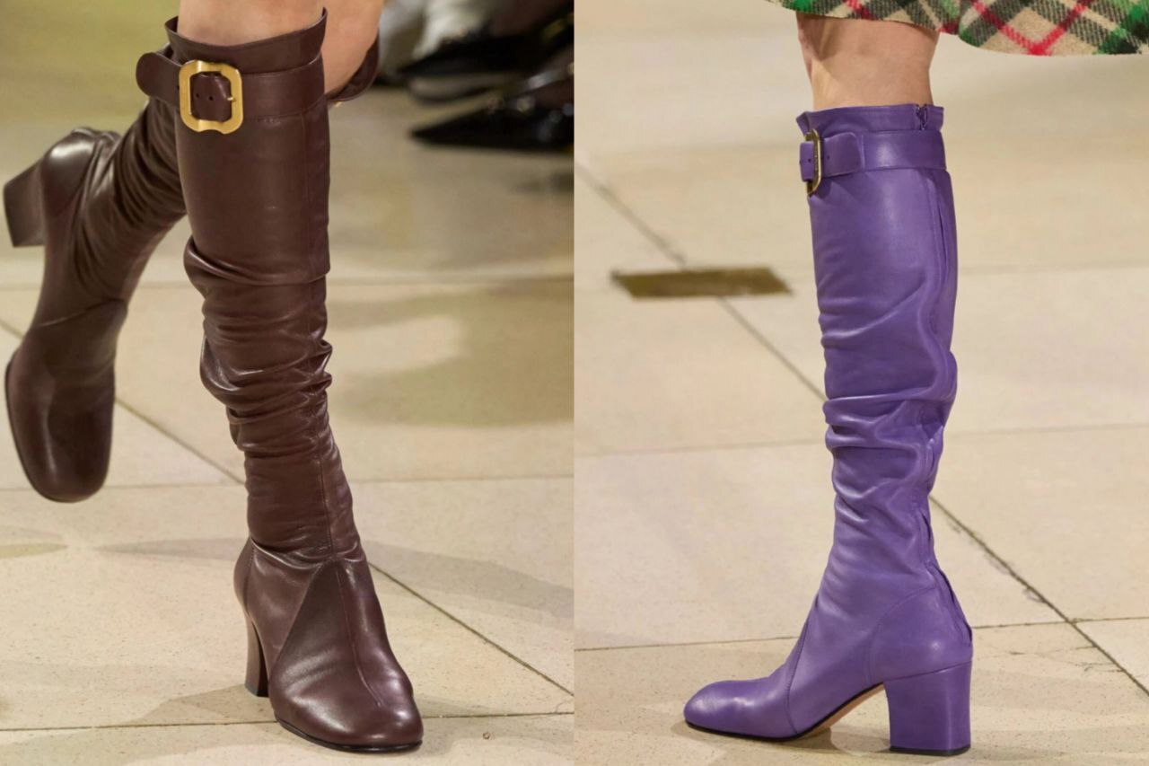 Більш стримані варіації запропонували Ralph Lauren і Zimmermann — м’які шкіряні чоботи до коліна з пряжками на щиколотці, які нагадують про кінний спорт і класичну верхову їзду.