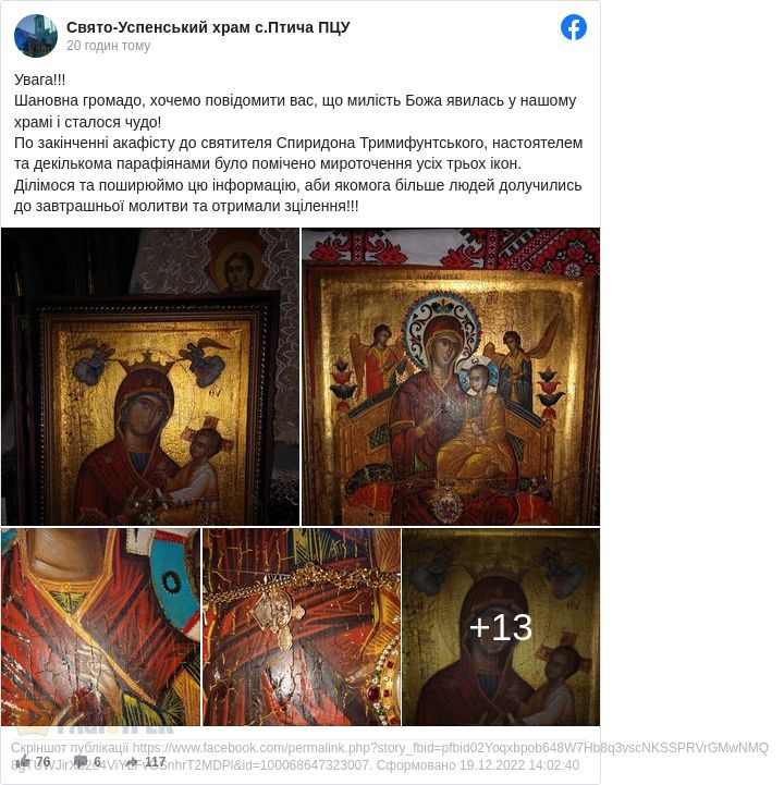 Про це на ФБ-сторінці Свято-Успенського храму ПЦУ в с. Птича написав його настоятель – отець Павло БАРАН.