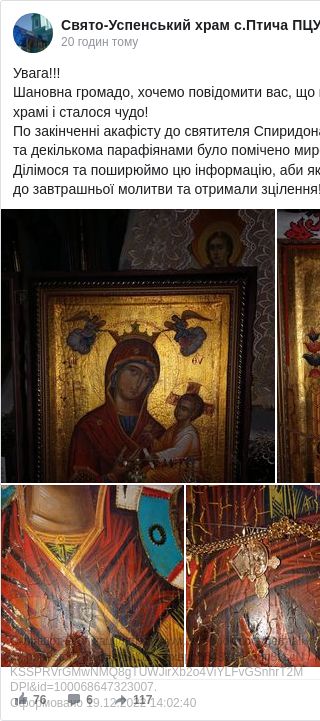 - Шановна громадо, хочемо повідомити вас, що милість Божа явилась у нашому храмі і сталося чудо!