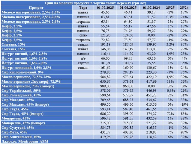 Згідно з даними Асоціації виробників молока, серед продуктів, що значно подорожчали, виділяються: сметана, йогурт, вершкове масло та тверді сири.