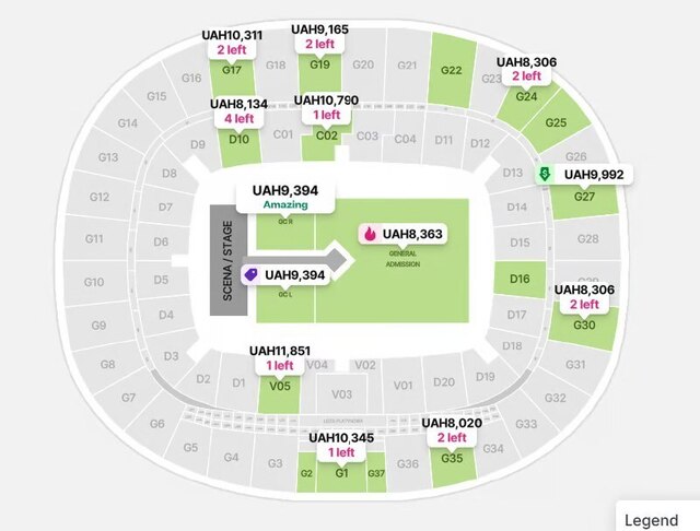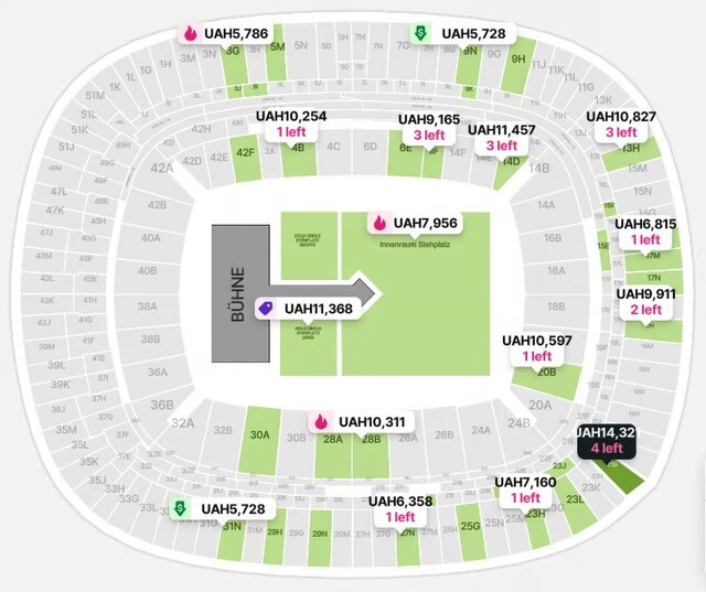 23 липня шоу відбудеться у Франції, на стадіоні «П'єр Моруа» у місті Вільнев-д'Аск. Початкова ціна — від 5 700 грн, місця з правого боку сцени — до 22 000 грн. За вхід у фан-зону доведеться заплатити від 13 000 до 14 000 грн, залежно від обраного сектору.
