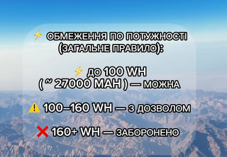 І знайомить з нормами обсягу енергії для павербанка, що дозволені у літаках: