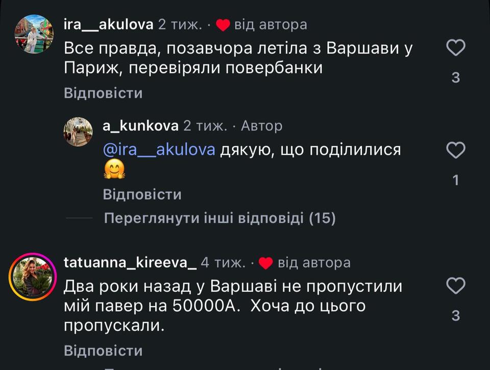 Аліна розповіла, як у її клієнтів у аеропорту Варшави забрали павербанки.