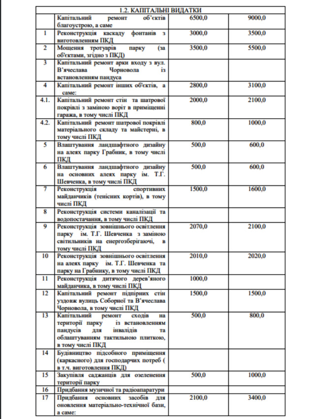 Також потрібно замінити у парках лампи освітлення на енергозберігаючі та придбати нові меблі у приміщення міського об’єднання парків культури і відпочинку. Бо нині у кабінеті директора – поламані стіл та крісла.