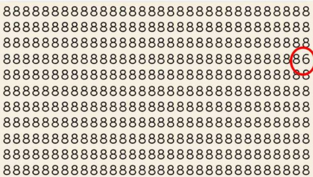 У цьому завданні вам потрібно знайти цифру 6 серед безлічі вісімок — завдання не з легких. Тож із цим завданням впораються лише уважні й наполегливі люди.