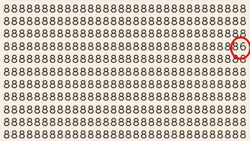 У цьому завданні вам потрібно знайти цифру 6 серед безлічі вісімок — завдання не з легких. Тож із цим завданням впораються лише уважні й наполегливі люди.