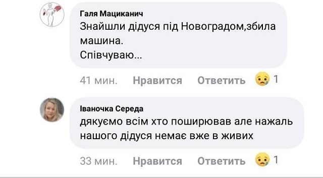 Дідуся, якого шукав онук на Рівненщині, на смерть збила машина під Житомиром