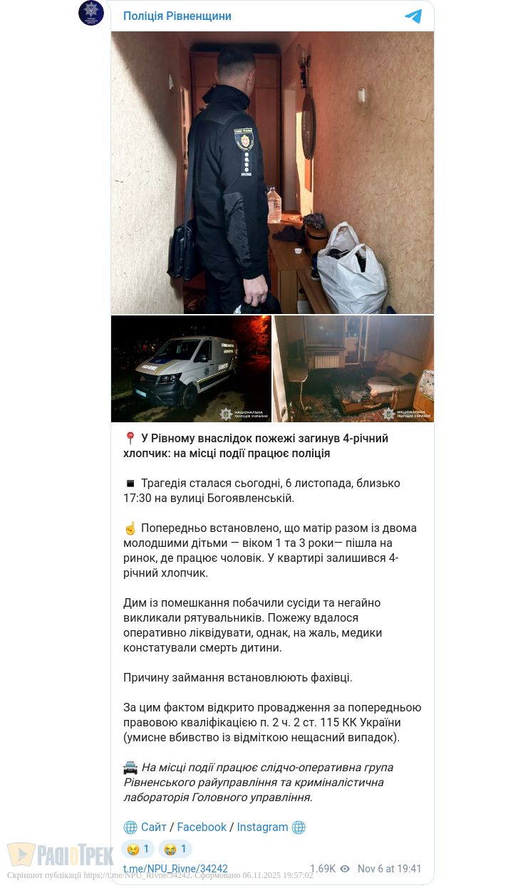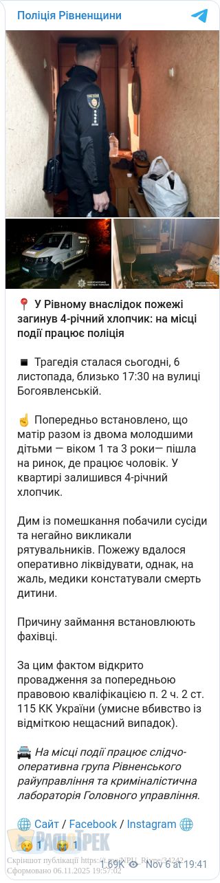 За попередніми даними, мати пішла з двома молодшими дітьми до чоловіка на ринок, а вдома залишився 4-річний син.