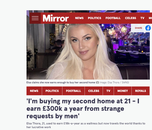 У Великій Британії 21-річна Ельза після закінчення школи не захотіла вступати до університету. Вона зареєструвалася на одній із платформ та заробляє тепер майже 30 тисяч доларів на місяць.