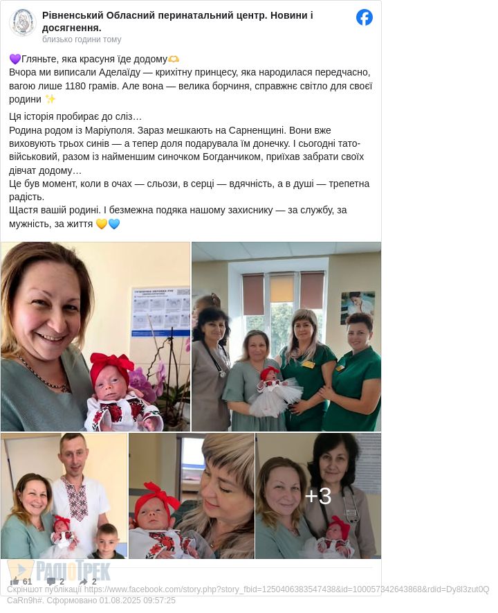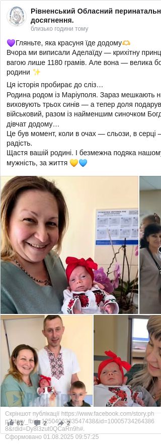 Відомо, що у сім’ї, де є вже троє синів, це перша донечка. Забрати її із лікарні приїхав тато-військовий із найменшим братиком.