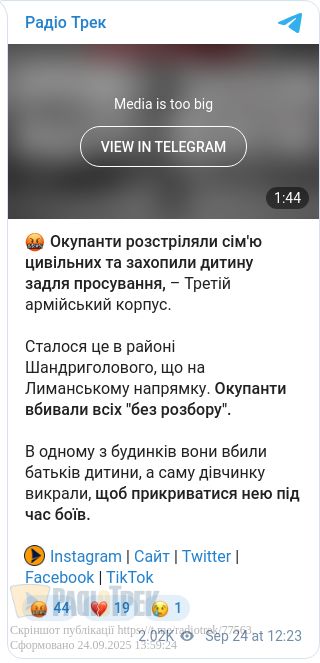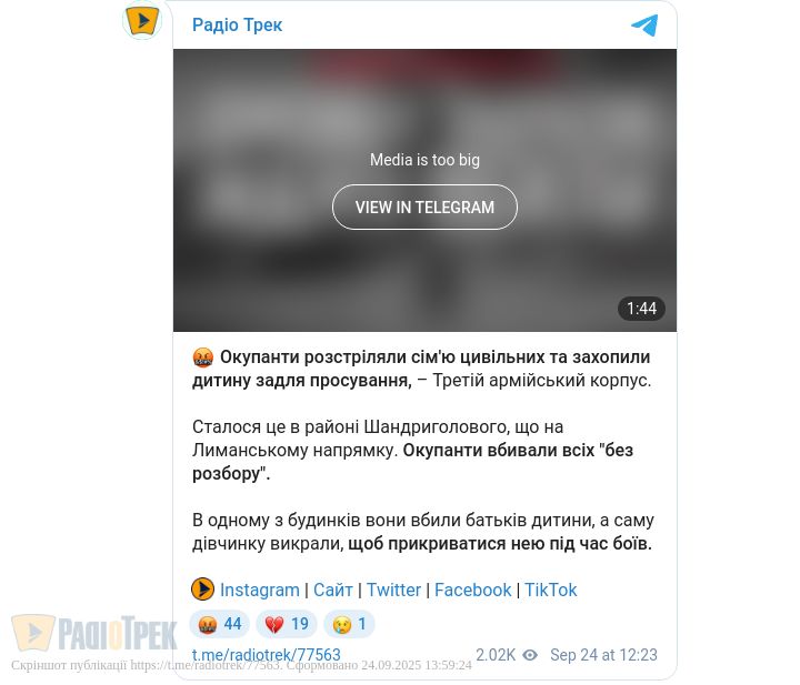 На Донеччині російські військові вбили цілу родину та викрали дівчинку. Про це повідомляють бійці Третього армійського корпусу. За їхніми даними, командир ворога віддав наказ «вбивати всіх без розбору».