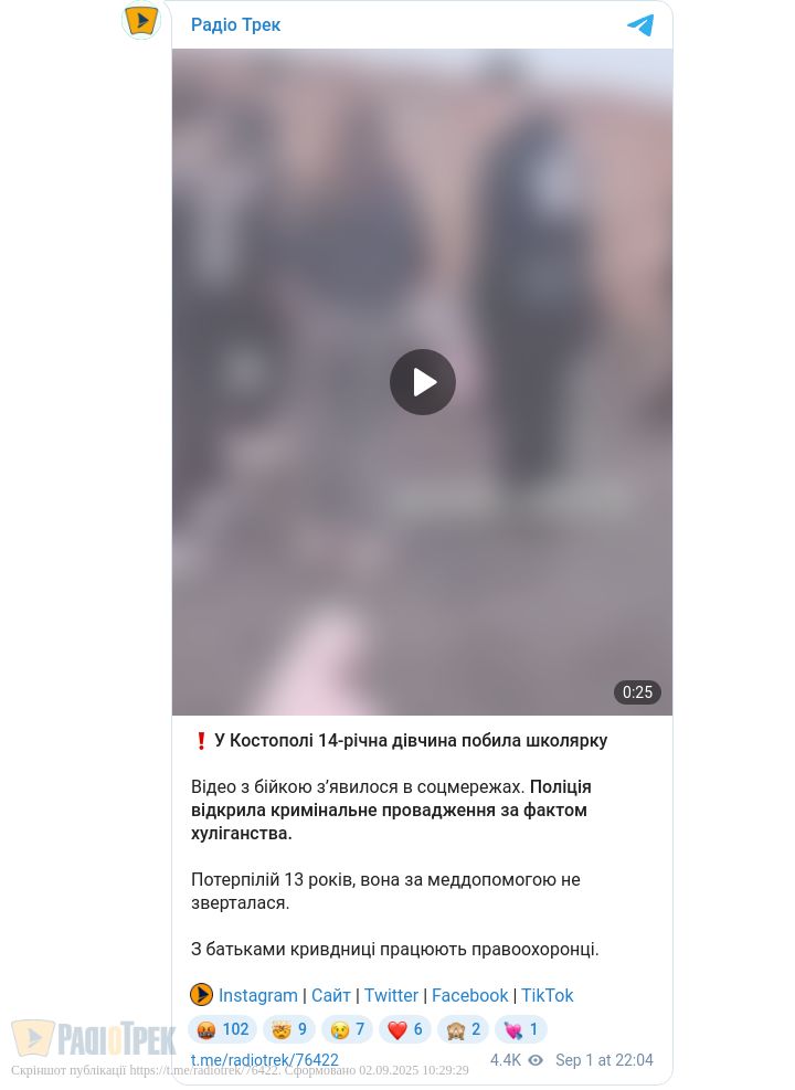 Відео з кадрами, на яких видно, де неповнолітню ставлять на коліна і наносять удари, почали поширювати місцеві telegram-канали.