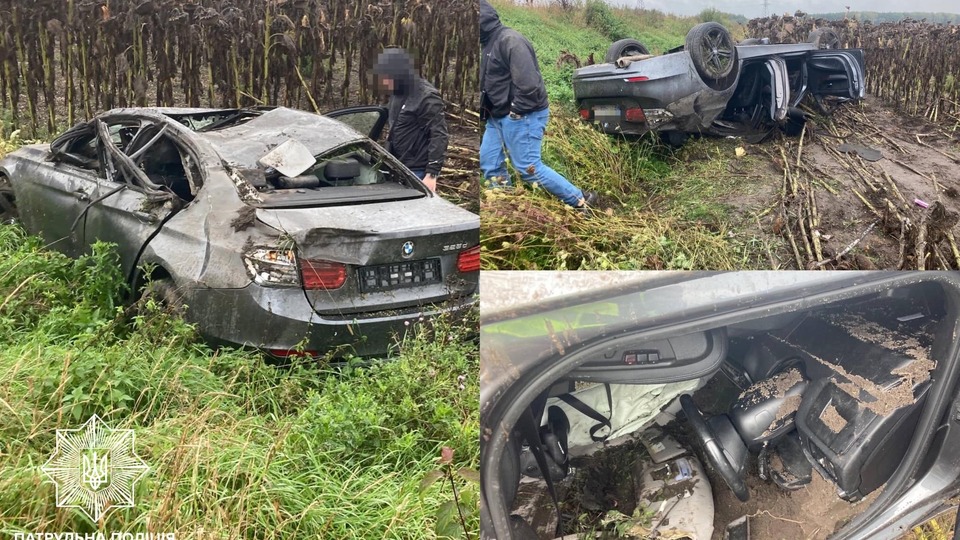 Дивом ніхто не травмувався: на Київ-Чоп перевернулась BMW