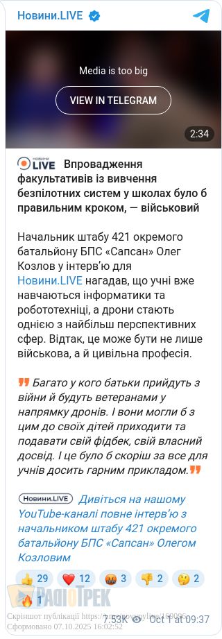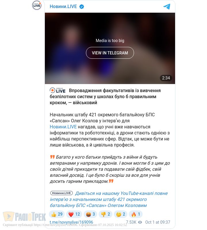 Начальник штабу батальйону БПС «Сапсан» Олег Козлов у коментарі «Новини.LIVE» пояснив, що уроки з дронів могли б стати логічним продовженням інформатики та робототехніки, які вже є у школах.