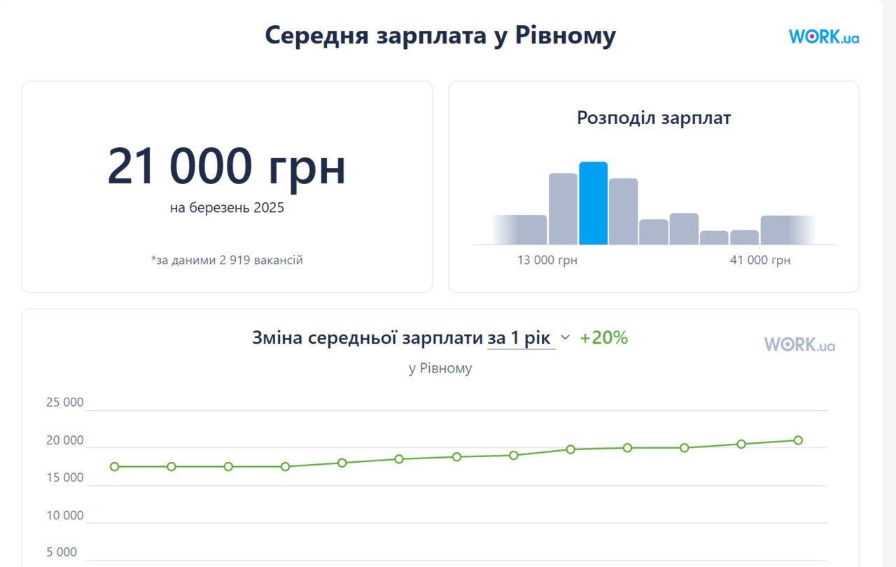 На Рівненщині зросла середня зарплата, на 20%. За даними порталу з пошуку на місяць у Рівному заробляють 21000 гривень. Це на півтори тисячі більше ніж було торік.