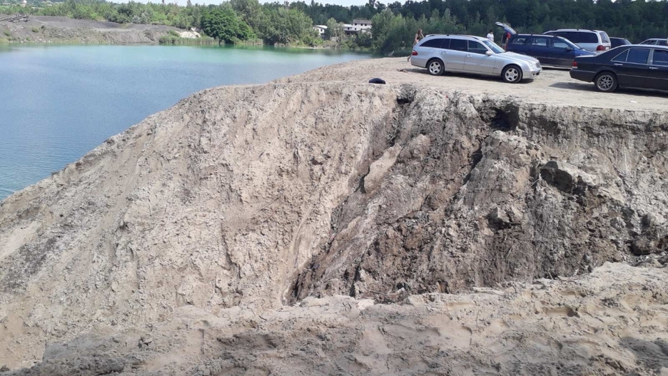 Ранньої весни тут повністю засипали землею прохід до водойми, яка насправді є затопленим кар’єром та промисловим об'єктом, а не зоною відпочинку. Спуститися можна лише вузькою крутою стежкою, і не всі на це наважуються.