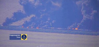 Потяг зійшов з рейок і зараз його добивають всім, що може літати. Палає красиво.