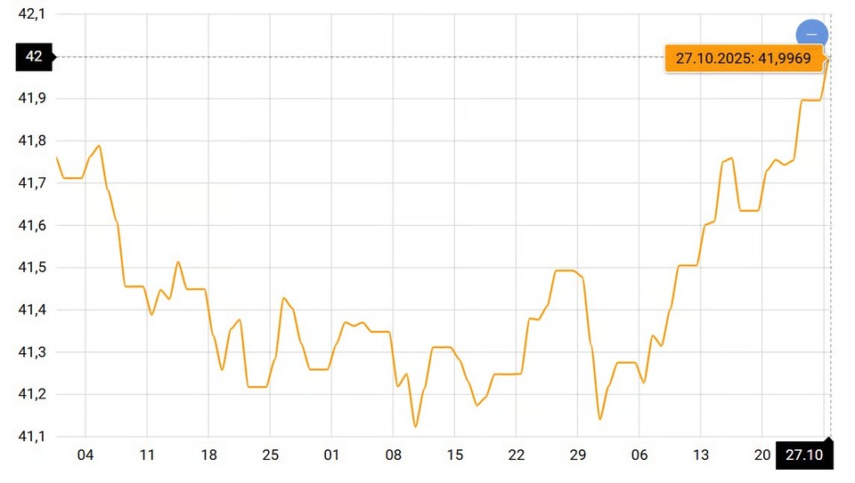 За його прогнозами, у листопаді офіційний курс триматиметься біля позначки 42 гривні за долар.