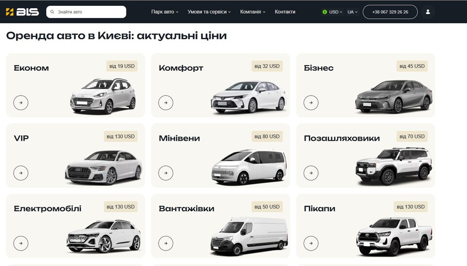 - Додаткові послуги (GPS, дитячі крісла тощо)