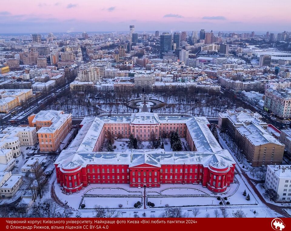 Знімок із видом на засніжений Київський національний університет імені Тараса Шевченка посів друге місце в найбільшому у світі фотоконкурсі пам'яток культурної спадщини Wiki Loves Monuments 2024.