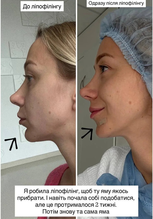 У червні цього року вона наважилася на ліпофілінг, щоб скоригувати невелику вм’ятину на підборідді. Спершу результат її тішив, однак уже за два тижні зміни зникли, і дівчина знову почала комплексувати.