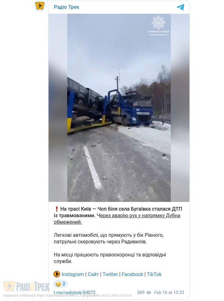 Через аварію рух у напрямку Дубна обмежений.