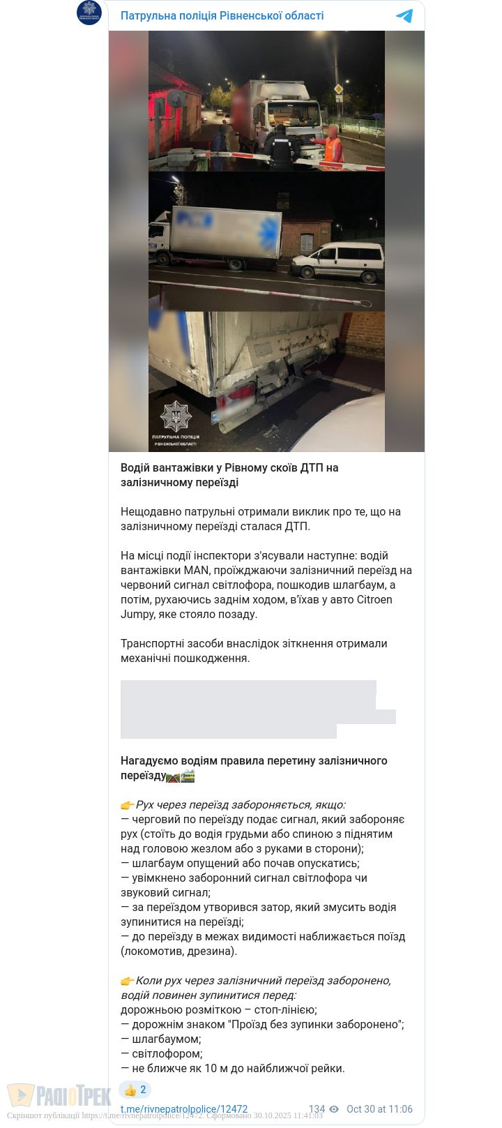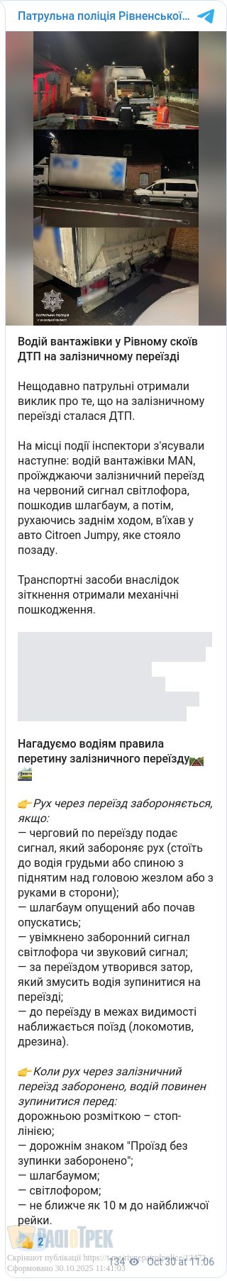 У Рівному водій вантажівки спричинив ДТП на залізничному переїзді. Інцидент стався сьогодні зранку.