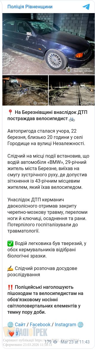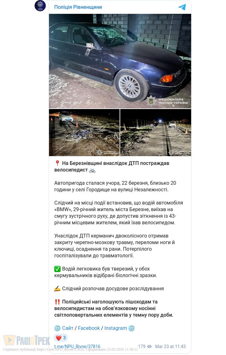 ДТП на Березнівщині: водій BMW збив велосипедиста (ФОТО)