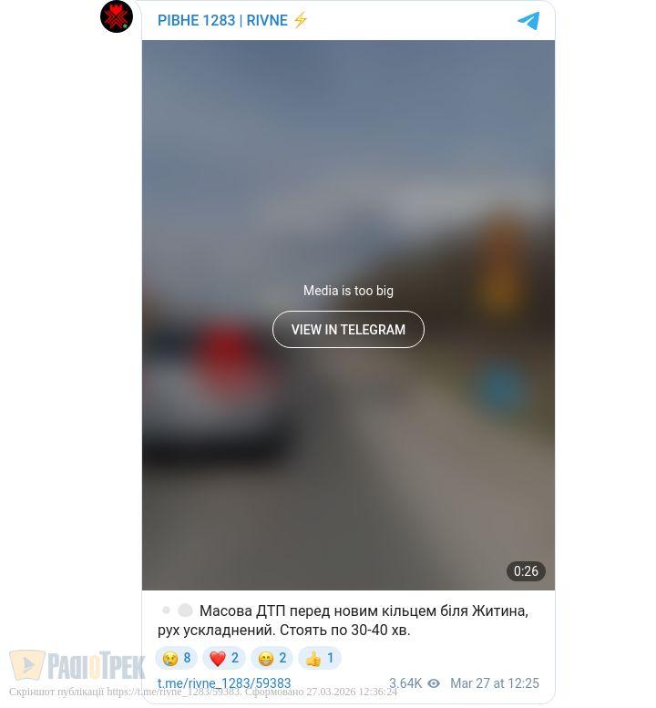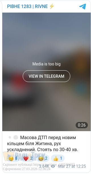 Масова ДТП у напрямку Костополя: рух ускладнено від Житинського кільця
