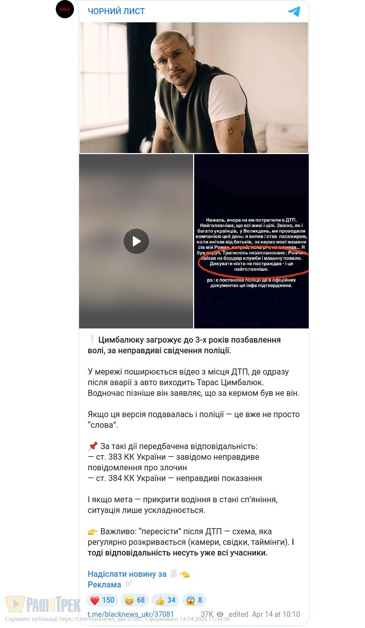 Втім, сьогодні з’явилися й відео з камер спостереження, де, за словами користувачів, видно, що Тарас Цимбалюк перебував на водійському сидінні та виходив з авто.