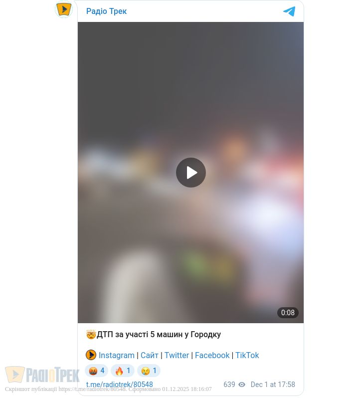 ДТП за участі 5 авто на трасі в Городку біля Рівного: рух однією смугою ускладений (ВІДЕО)