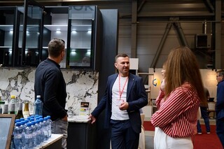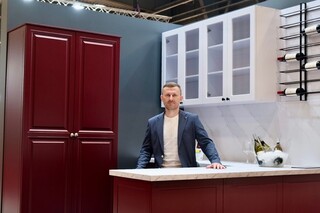 Особливу увагу відвідувачів привертала композиція кухні та шафи у відтінку бургунді — трендовому кольорі, що поєднує глибину й насиченість. Це рішення виглядало стримано, але водночас виразно, демонструючи, як навіть насичені кольори можуть гармонійно вписуватися у сучасний інтер’єр. Бургунді став помітним акцентом виставки — вибором для тих, хто не боїться поєднувати функціональність із характером.
