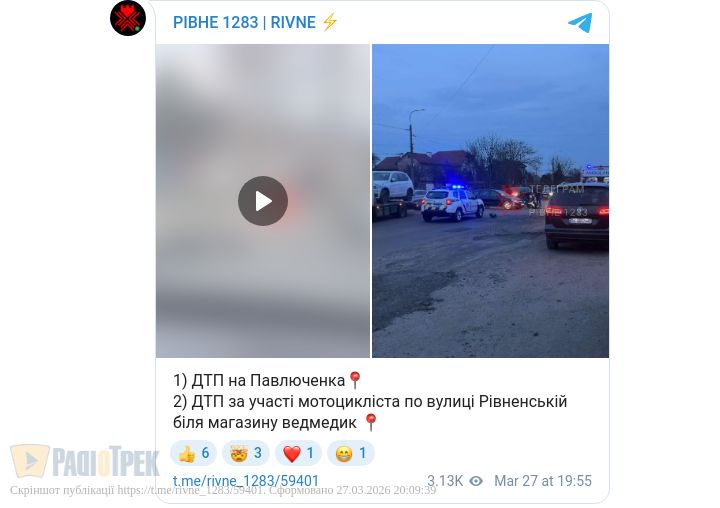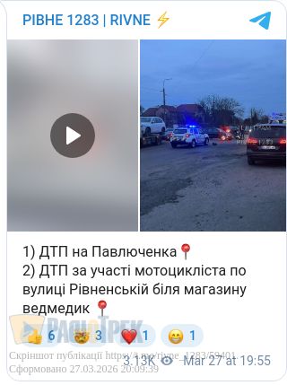 У Рівному сталися дві ДТП. На вулиці Павлюченка не розминулися легковики, а на вулиці Рівненській, біля магазину «Ведмедик», аварія за участі мотоцикліста.