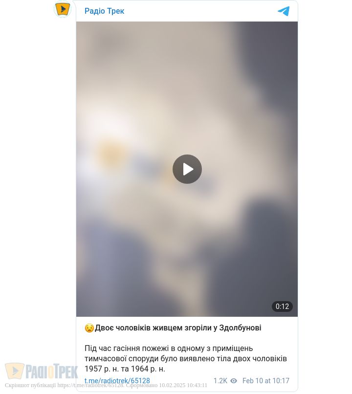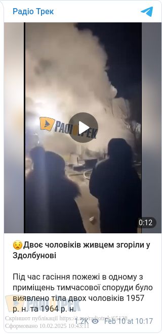 Там вогонь майже вщент знищив будівлю. Під час гасіння пожежі в одній з приміщень тимчасової споруди вогнеборці виявили тіла 67-річного та 60 річного чоловіків.