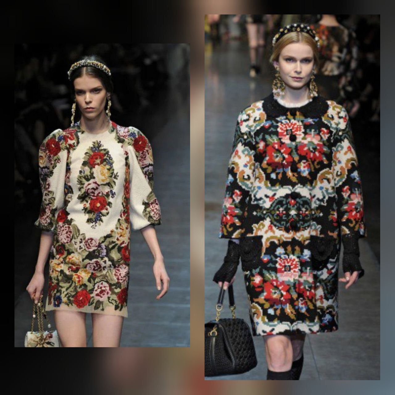 Dolce & Gabbana у 2012-му створили розкішну колекцію з бароковими елементами, які напрочуд нагадували килимову вишивку. А Moncler Gamme Rouge і Sportmax у 2016 році осучаснили етнічні мотиви: білі сукні, червоні орнаменти, об’ємні рукави — усе це звучало як нове переосмислення вишиванки у глобальній моді.