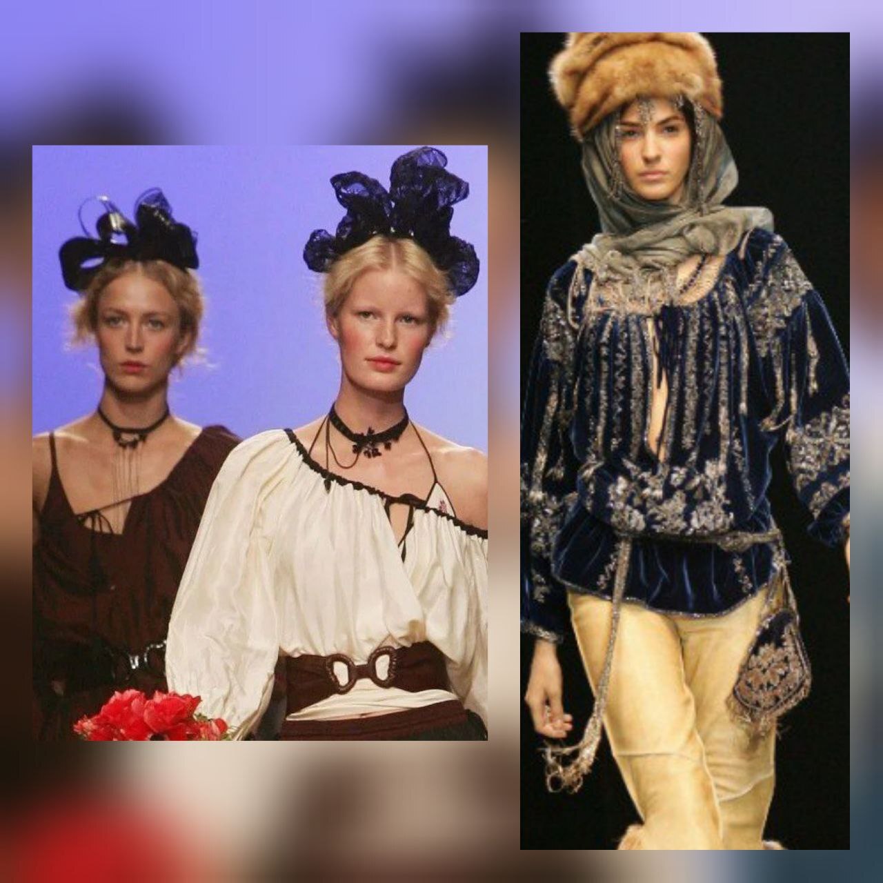 Французький дизайнер Жан-Поль Готьє ще у 2005 році представив на подіумі моделі в образах, натхненних гуцульськими вбраннями: з вишиванками, жилетами та прикрасами, що нагадували кетяги калини. Джон Гальяно для Dior у 2008 році поєднав вишивку з театральністю, а Gucci у тому ж році включив у свої луки мотиви, схожі на українські квіткові узори.