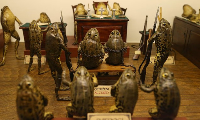 Тут зібрано 507 таксидермованих жаб, тобто справжніх, але висушених, яких виставили в сценах з повсякденного життя людей, повідомляє Daily Mail.
