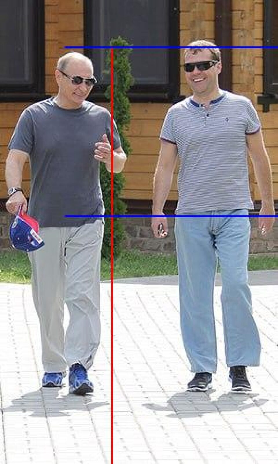 Зріст Медведєва 162-163 сантиметри, в той час як Путін на фото нижче за нього щонайменше на 3-4 сантиметри.