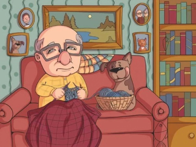На зображенні вище можна побачити літнього чоловіка, який разом зі своїм собакою відпочиває в затишній вітальні. Здавалося б, нічого незвичайного, але серед деталей кімнати заховався метелик.
