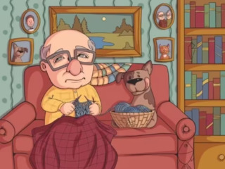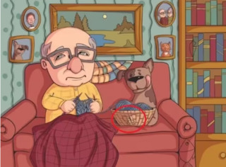 На зображенні вище можна побачити літнього чоловіка, який разом зі своїм собакою відпочиває в затишній вітальні. Здавалося б, нічого незвичайного, але серед деталей кімнати заховався метелик.