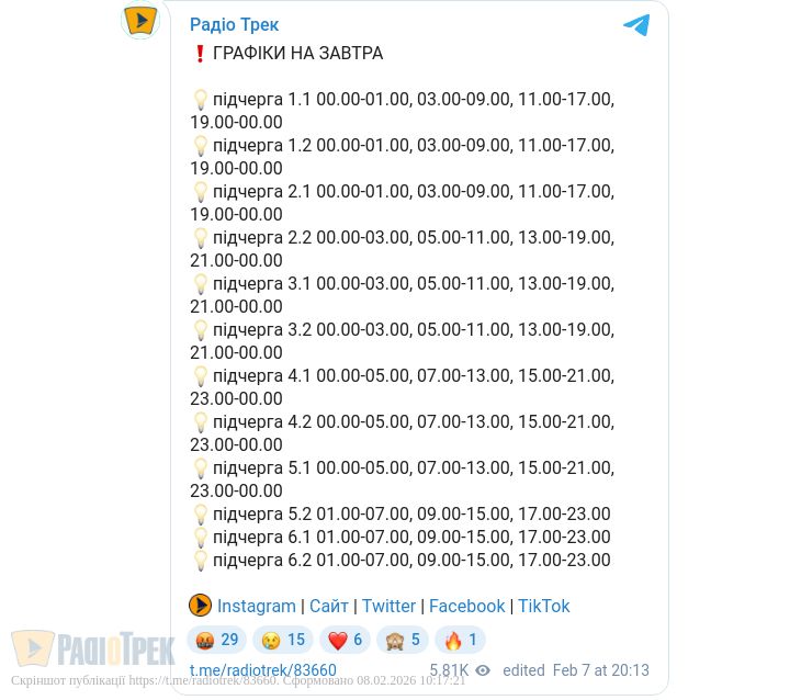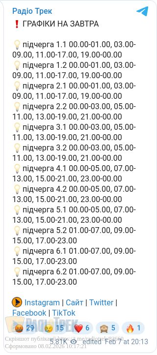 Графіки для цих споживачів не діятимуть орієнтовно протягом години.