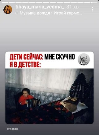 На світлині дівчинка на гармошці біля покійної бабці. Кепкуючи над ситуацією, Марія Тиха так прокоментувала фото: