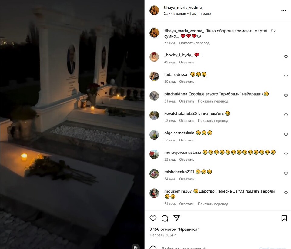 На своїй сторінці вона часто показує, що відвідує кладовище. Вона ходить до загиблих воїнів і навіть до політиків.